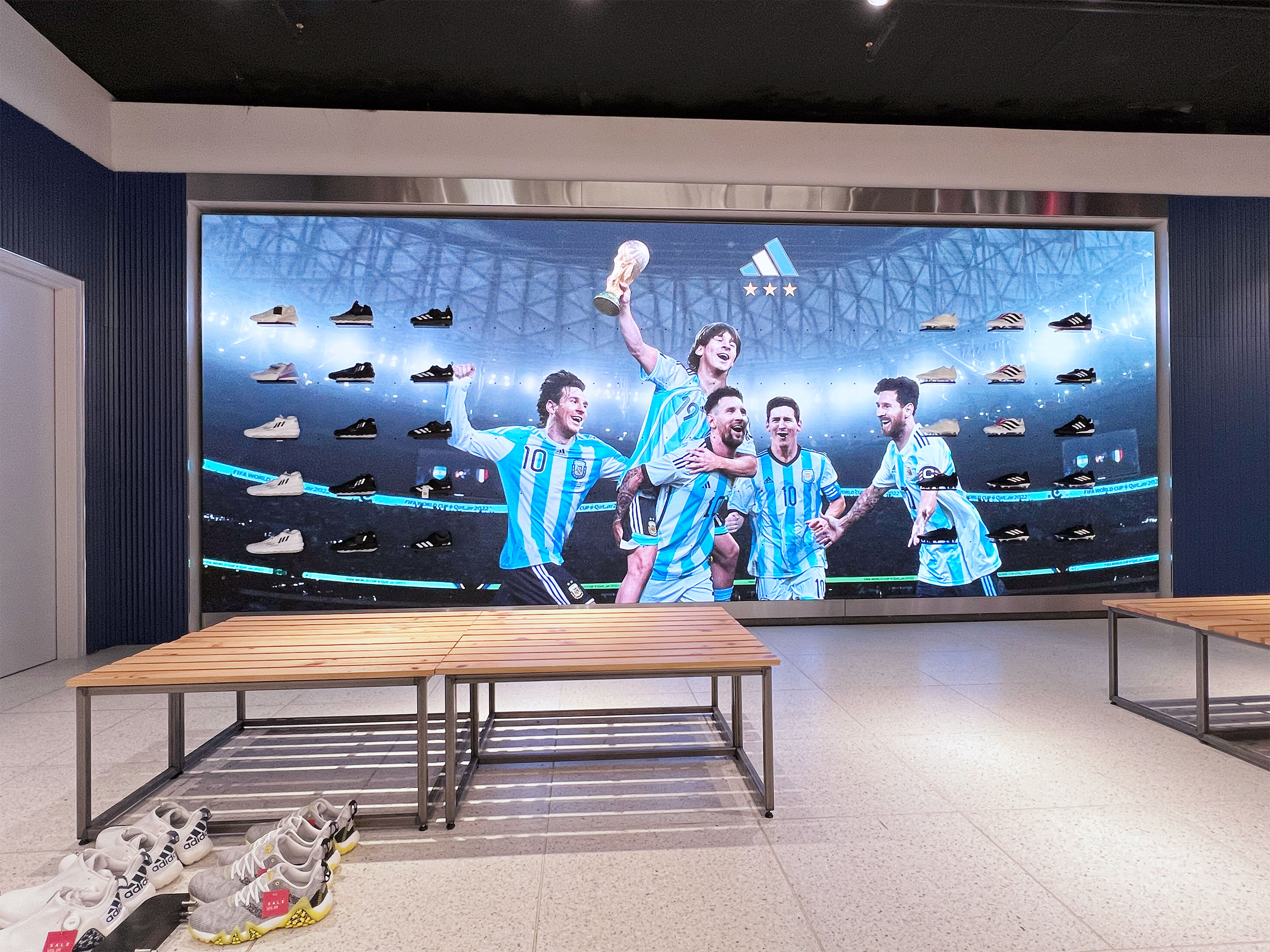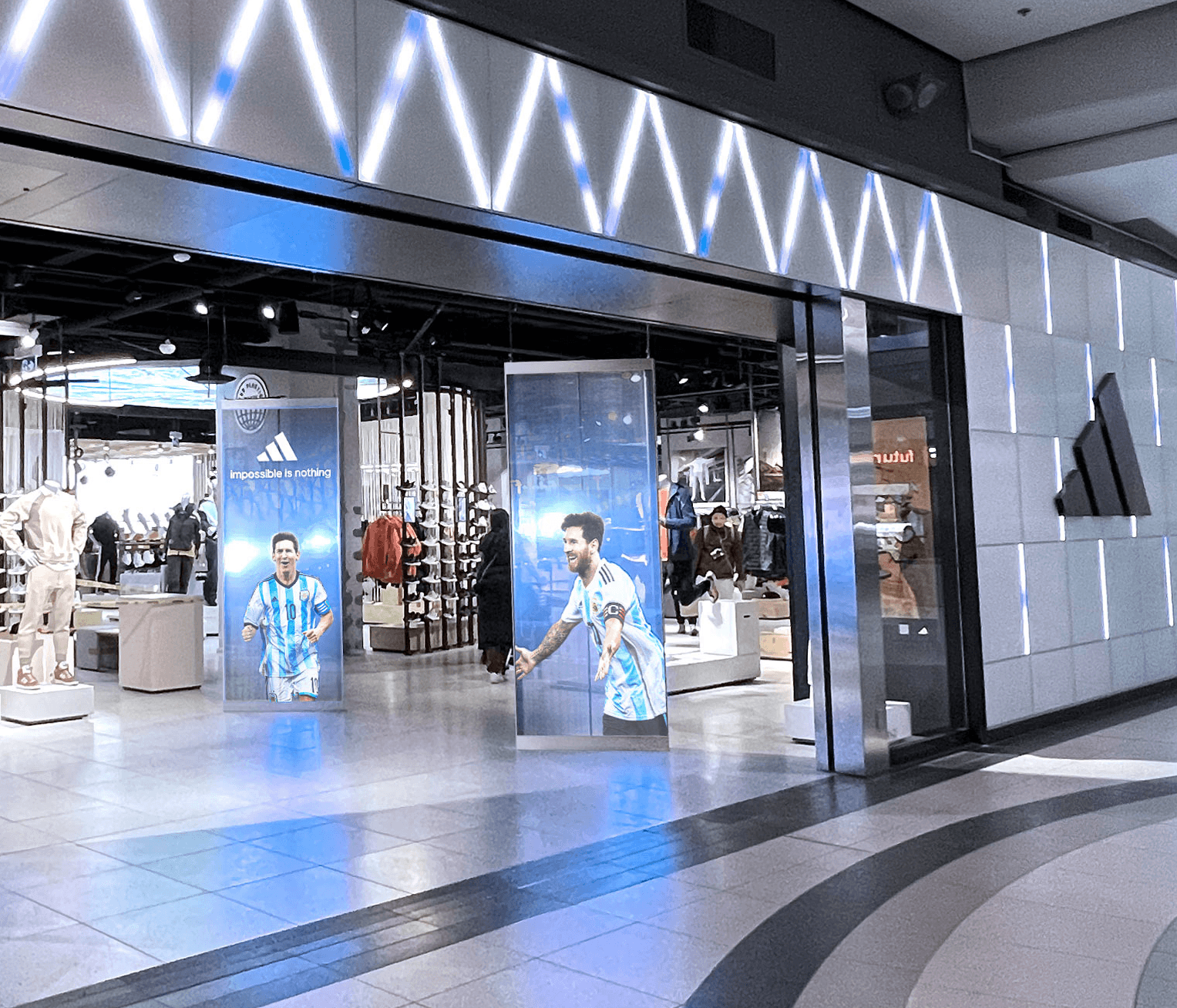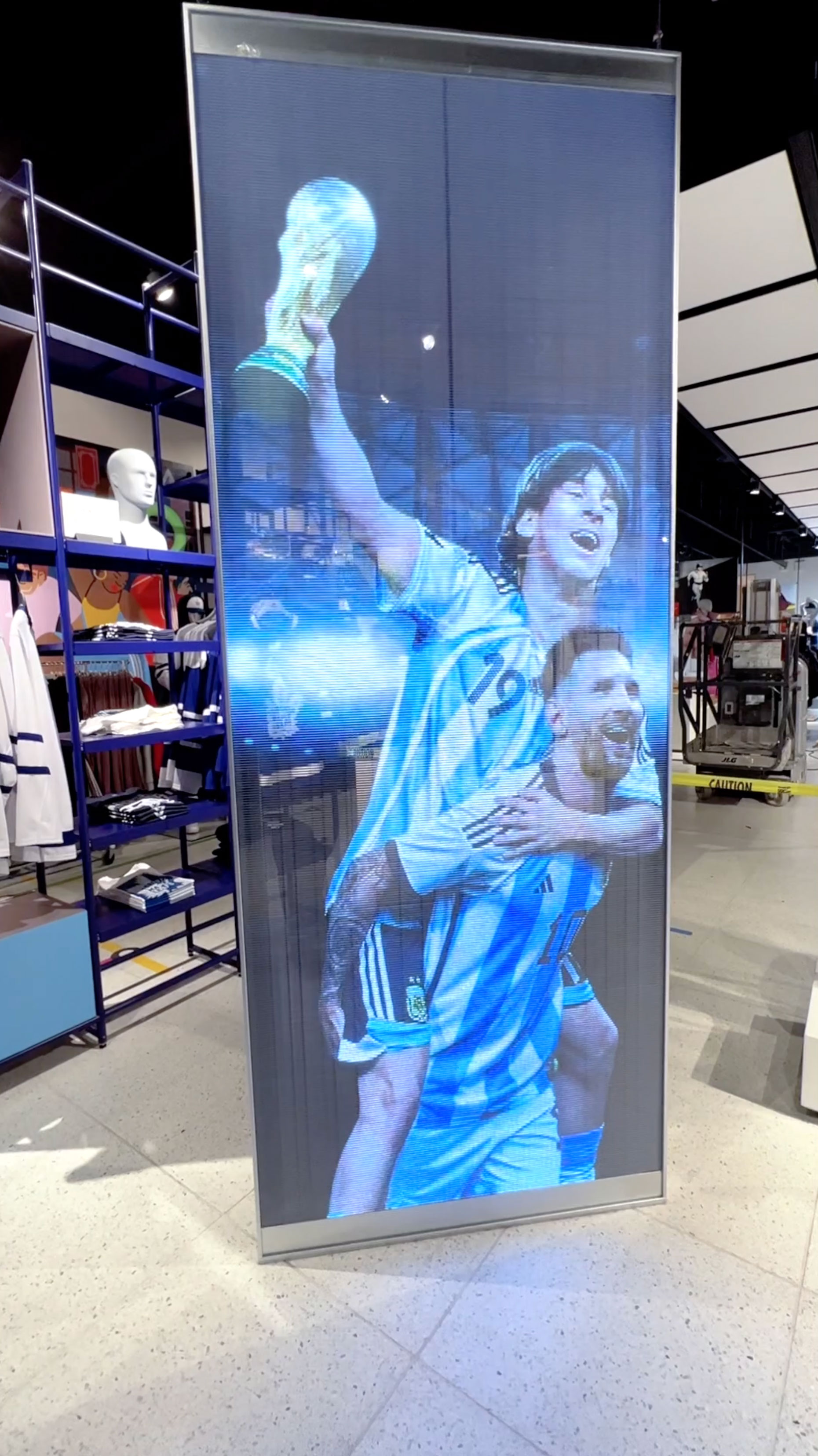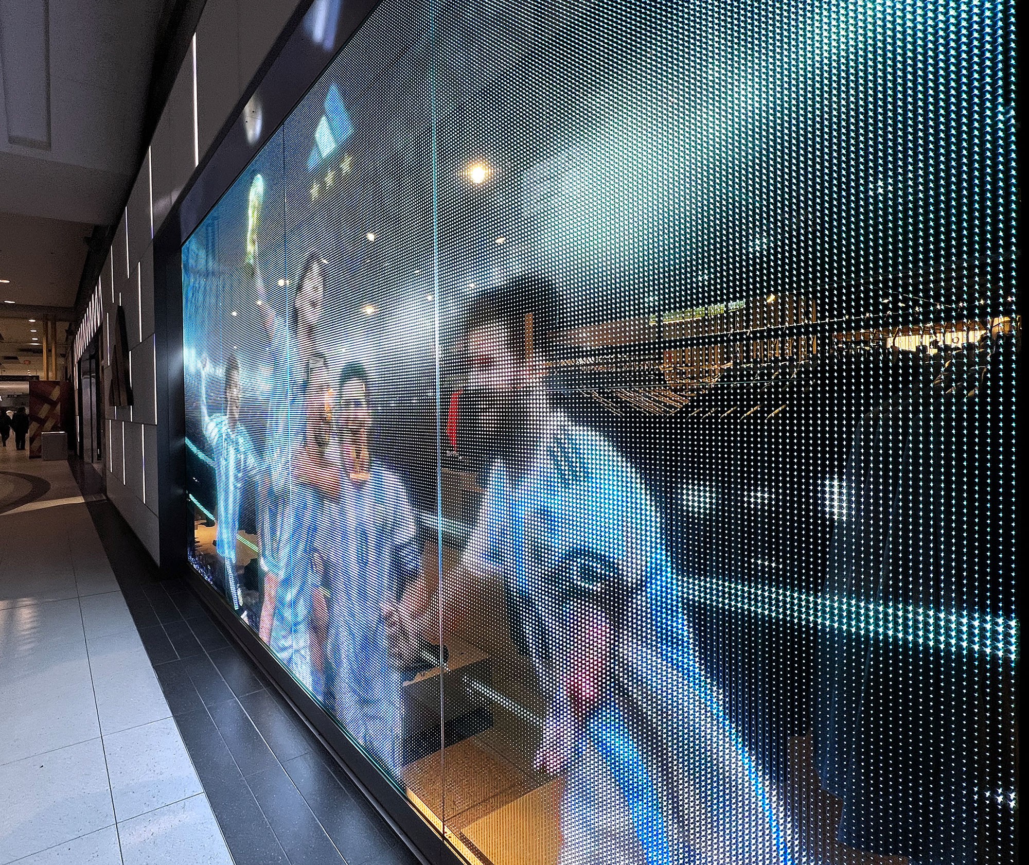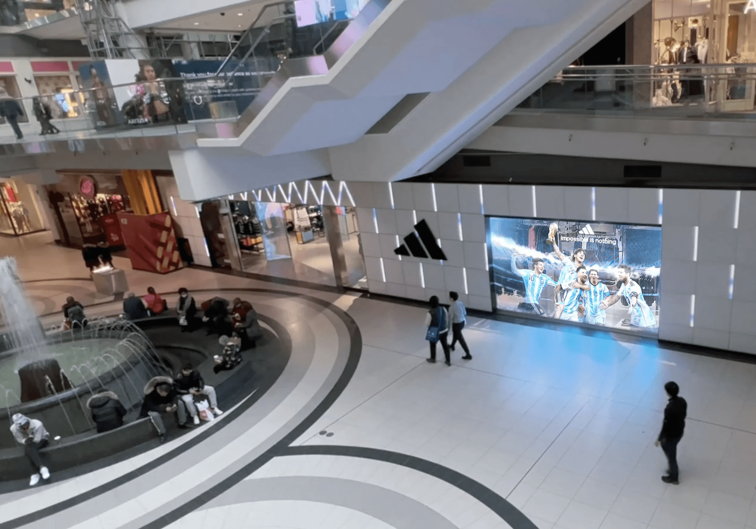 We developed a multi-layered composition titled “The Messi 5,” featuring modern-day Messi carrying his 19-year-old self as the younger version lifts the World Cup trophy. They are surrounded by three additional Messi figures representing other World Cup eras. This holographic visualization captivates shoppers, stopping them in their tracks and drawing them into the store.