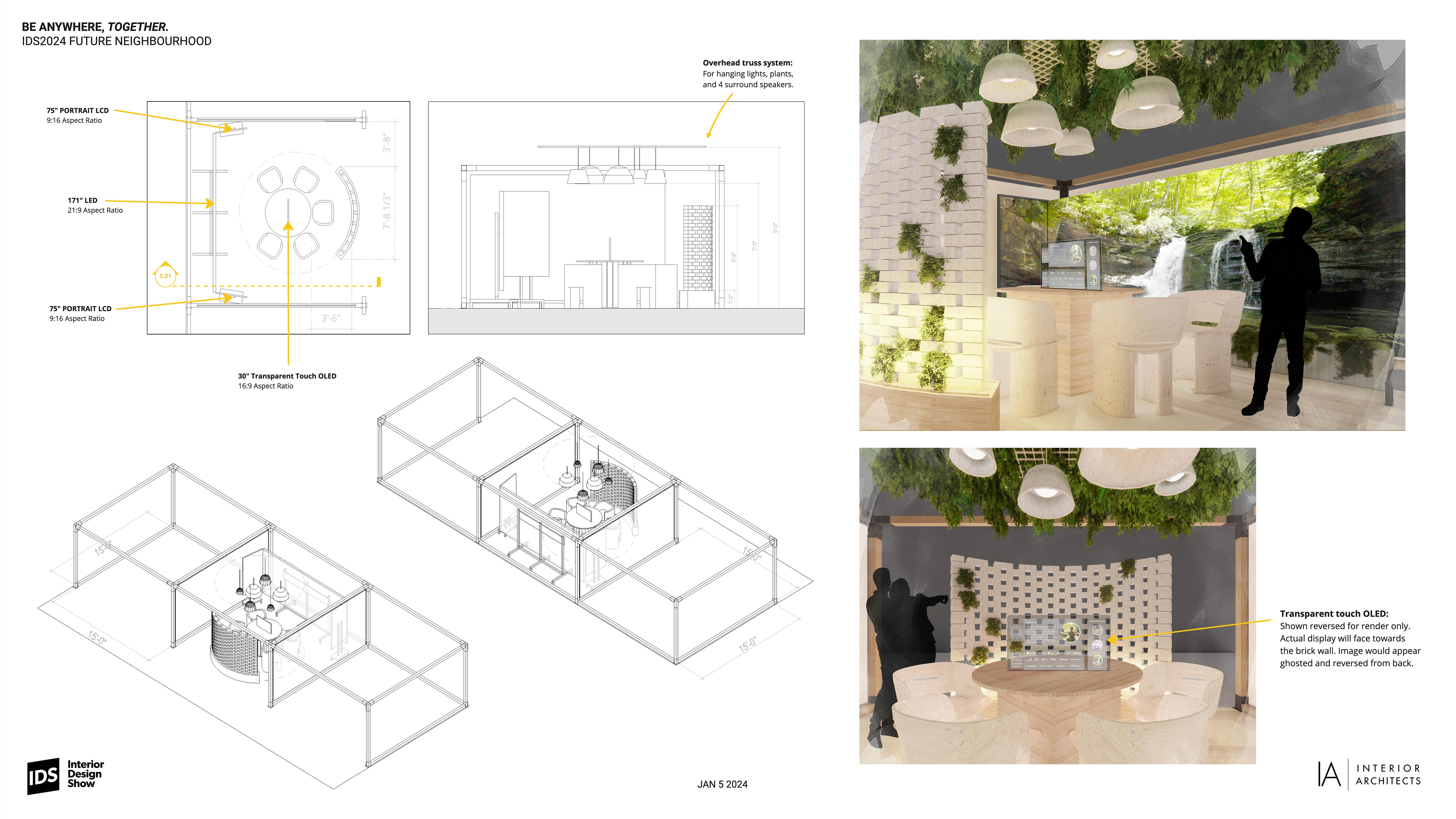 Despite the spatial and budget constraints, the exhibit was a triumph of strategic planning, cross industry collaboration, and design. It maximized the available space while respecting the existing architecture and infrastructure, showcasing a harmonious blend of nature and technology. In the spirit of true collaboration, our partner’s helped us bring this vision to life providing materials, technology, and construction support. Our design delivered a human-centered, environmentally friendly, and technologically advanced space that supports both individual well-being and community growth